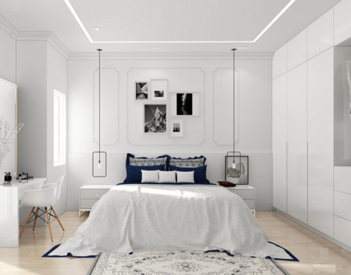 Phòng ngủ màu trắng cho người thích sự đơn giản, nhẹ nhàng