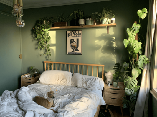 Sơn phòng ngủ màu xanh lá cây mang lại cảm giác mát mẻ
