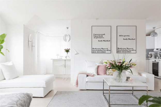Cách phối màu đơn sắc với sơn nội thất màu trắng tinh tế