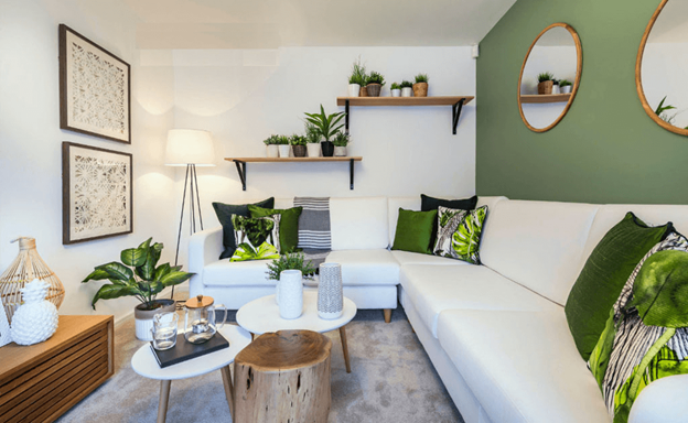 Màu xanh lá cây: Cách phối màu sơn nội thất màu xanh lá cây từ đậm đến nhạt mang lại không gian đa chiều, tạo được chiều sâu và mở rộng không gian, hài hòa màu sắc, không lòe loẹt, từ đó việc kết hợp với màu nội thất cũng đơn giản hơn.